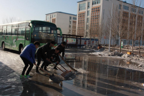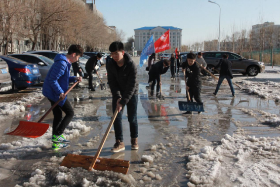 本网讯(记者 翟远东 摄影 郭博广)3月10日,随着天气转暖,积雪融化,湿滑难行的道路给师生的出行带来很大的不便。为及时铲除冰雪,优化校园出行环境,防止夜间道路结冰,给师生的出行带来了方便。计算机与信息工程学院第五届青年志愿者联合会迅速组织志愿者于下午两点对校园停车场融化的积雪进行清理。