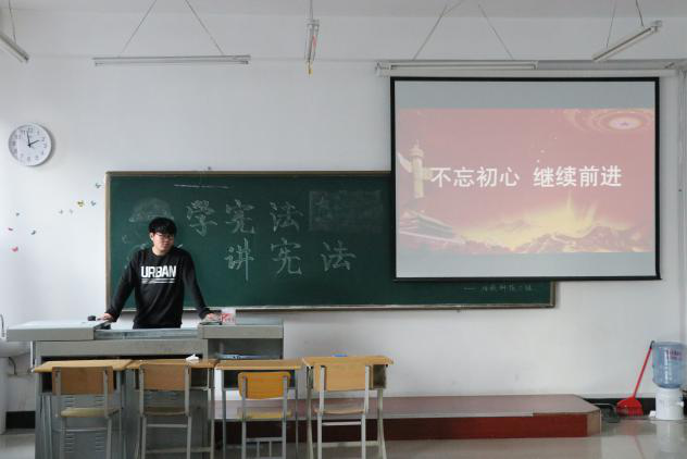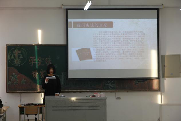 各班班委以PPT的形式详细介绍了宪法的起源、发展与作用,使同学们能准确地了解到宪法是国家的立法之本,更是国家安定之本。同时也向同学们讲解了因为不懂法,不知法所酿成的大错,警示同学们不要误入雷区,更要懂法知法。