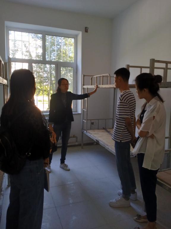 为在19级新生到来之际,营造更加温馨、整洁、明快的寝室氛围,8月26日上午10时,计算机与信息工程学院党总支副书记韩雪带领辅导员到新生寝室进行了现场考察布置。其中,重点对新生寝室卫生打扫标准与注意事项、门牌设计、温馨提示与老生留言卡设计、床头卡设置及如何将寝室布置与建国70周年庆祝元素相融合等问题进行了详细的讨论与安排。力争让新生能够充分感受到学院师生的热情和良好的寝室氛围,更快的融入崭新的校园生活。