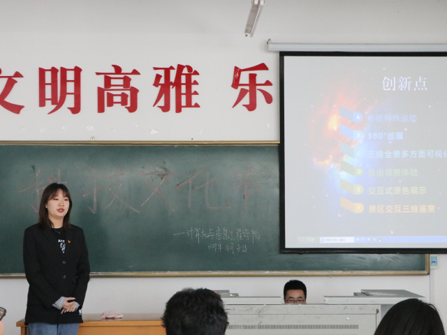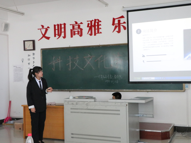 在主持人宣布开始后,22位项目负责人依次对自己的项目进行讲解,通过PPT展示的形式,将项目的创新性、实用性等特点展现出来。评委老师针对每个项目存在的问题进行点评,也在很多方面提出自己的建议,帮助学生完善好各自的项目。本次比赛通过四位评委老师现场打分形式进行,最终按照比赛成绩推选出9个项目参加校科技文化节复赛。