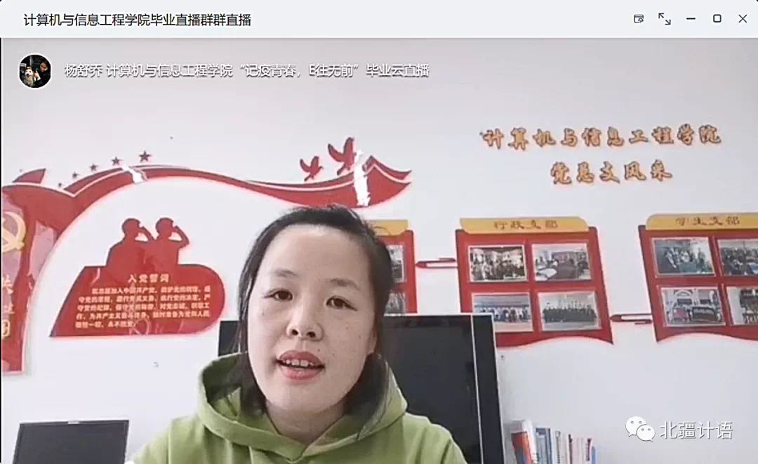 之后学院党总支书记陆竞,学生们的陆妈妈也惊喜的现身直播间为2016级的毕业生送去祝福,愿毕业生们都能够前程似锦,平安顺利。