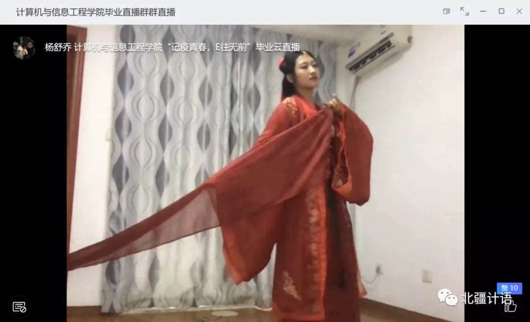 由于疫情的影响,对于今年的毕业生来说未能返回学校见到自己的老师和同学都会有或多或少的遗憾,但学院从来没有停止对学生们的关怀,为了尽可能的让毕业生们减少遗憾,我院于6月14日下午13:30在毕业生钉钉群开展“记疫青春,E往无前”云直播活动,担任本次直播主持人的是2017级网络工程2班杨舒乔,有将近30人参与本次的线上直播,有近500人观看本次直播,共同见证了计算机学院2020届毕业生这特殊的毕业仪式,给每个人都留下了珍贵的回忆。