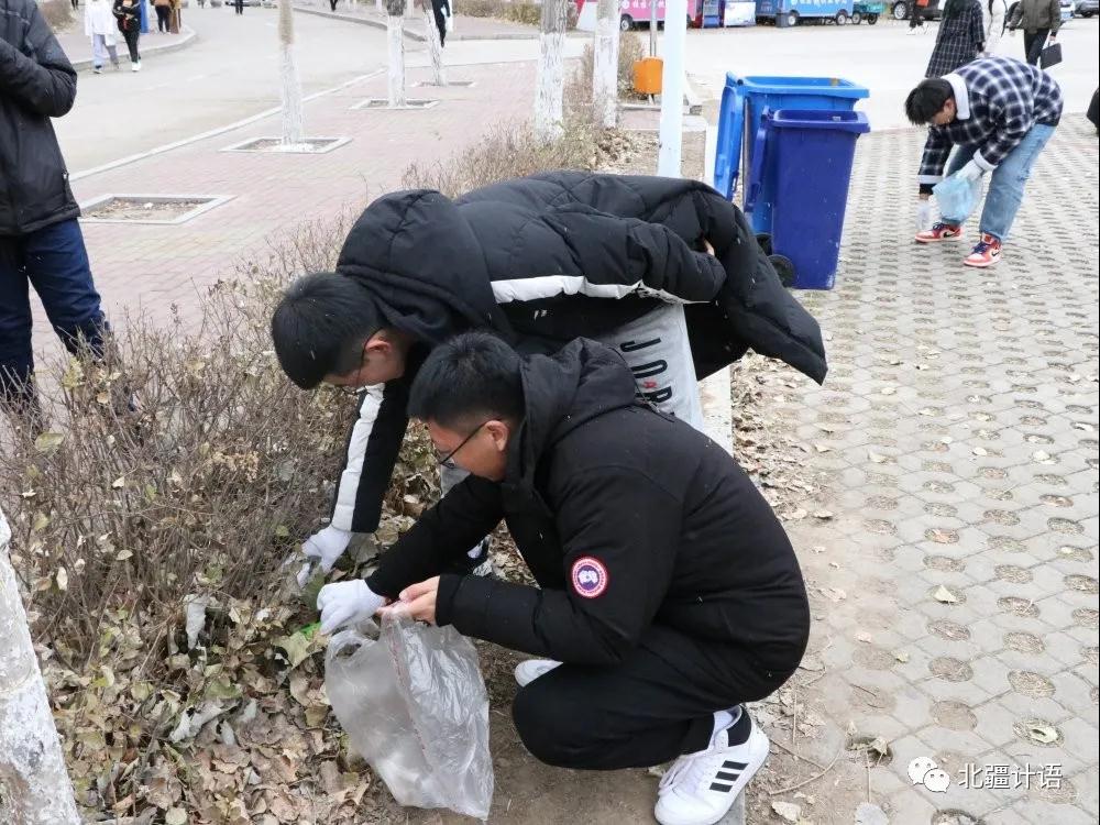 下午,同学们在探知楼一楼大厅准时集合,志愿者们戴着白手套,在各自的卫生区域打扫卫生,在凛冽的寒风中夹杂着小雪花,同学们用手拾起垃圾,计算机院学子认真清扫的身影,为黑河学院的第一场雪增添了些许温暖。