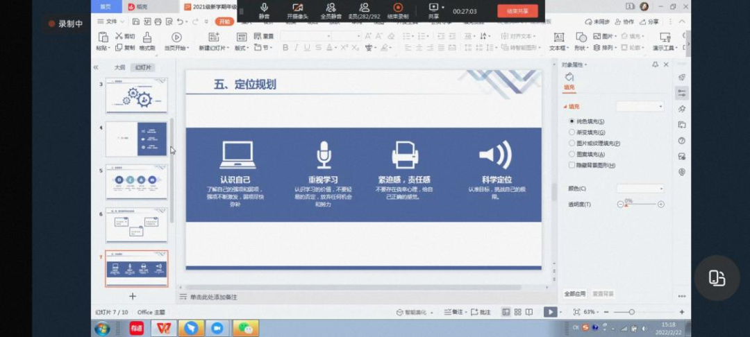 21级辅导员李长庚老师重点就“‘疫’常时刻下大学生的心理疏导与调适”对21级学生进行了宣讲。通过宣讲缓解了同学们因疫情产生的不良情绪和心理压力,提升了同学们对新冠肺炎防控知识的了解;同时鼓励同学们应当坚定自信、学习奥运精神,勇于挑战自我,不要放弃任何机会奋发拼搏努力。
