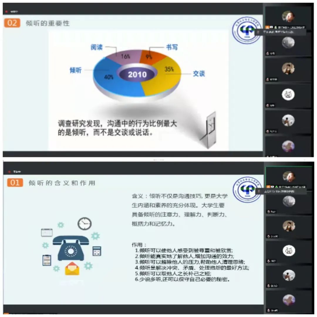 培训最后,参会三位教师现场模拟倾听的全过程,让全体参会学生身临其境地感受倾听的必要性和重要性,同学们纷纷表示,整场培训紧贴生活、学习和工作实际,内容特别充实,获益匪浅。