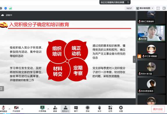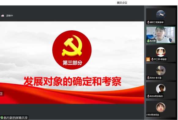 8月23日下午16点,计算机与信息工程学院2022专升本新生入党程序教育大会在腾讯会议召开。会议由由计算机与信息工程学院学生党支部书记韩月新老师主讲。