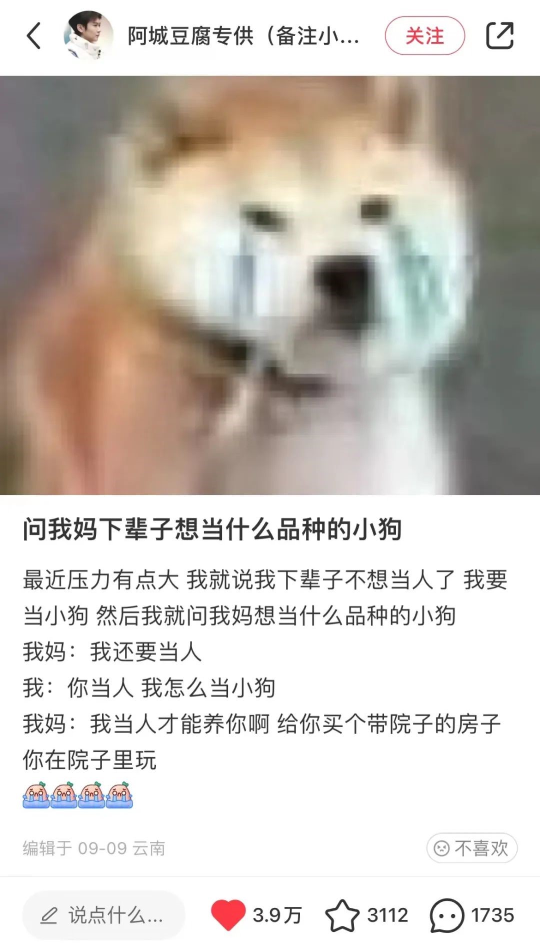 问我妈下辈子想当什么品种的小狗,