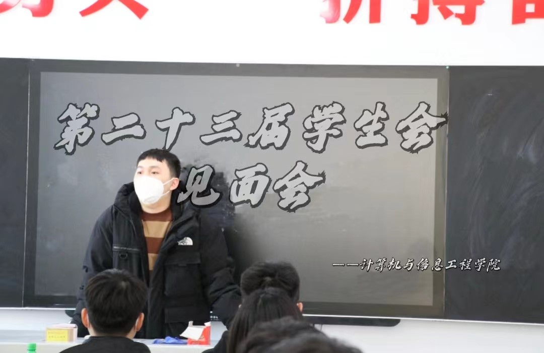 为了增进成员之间的了解和信任,加强各部门之间协作配合,全面推进计算机与信息工程学院学生会更好地发展。计算机与信息工程学院第二十三届学生会于2023年3月1日下午3点在探知楼B314教室组织进行了第一次线下见面会,会议由第二十三届学生会主席团主持召开。