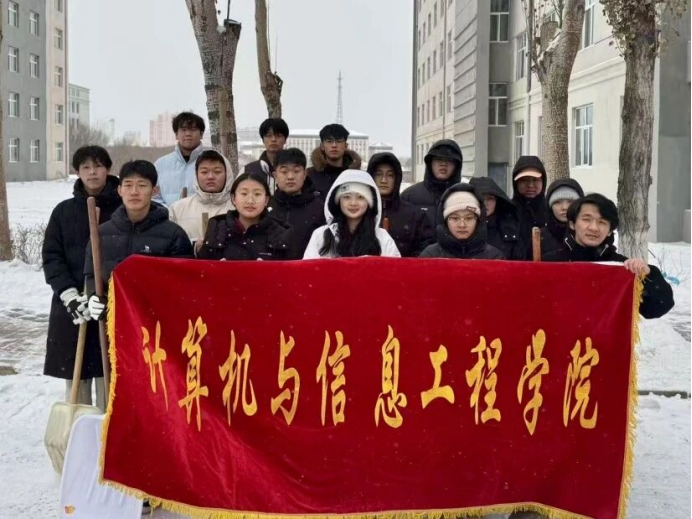 清雪护行暖校园 青春担当守平安——计算机与信息工程学院青年志愿者联合会开展校园清雪志愿活动