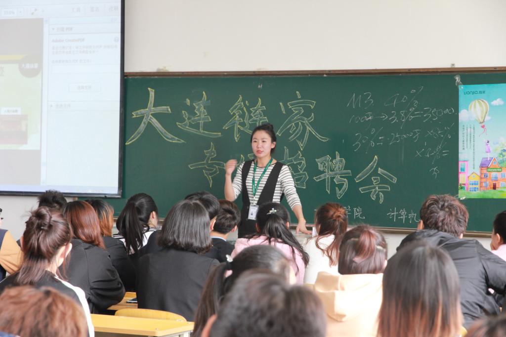 (通讯员王宇琦)2017年4月24日中午,计算机与信息工程学院与理学院在探知楼B301共同举办“链家集团”专场招聘会。“链家集团”大连分公司HR张田及我院在“链家集团”工作的14届毕业生范宇为参加招聘会的同学详细介绍公司情况。