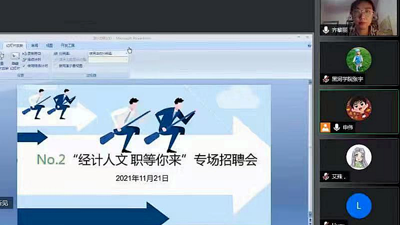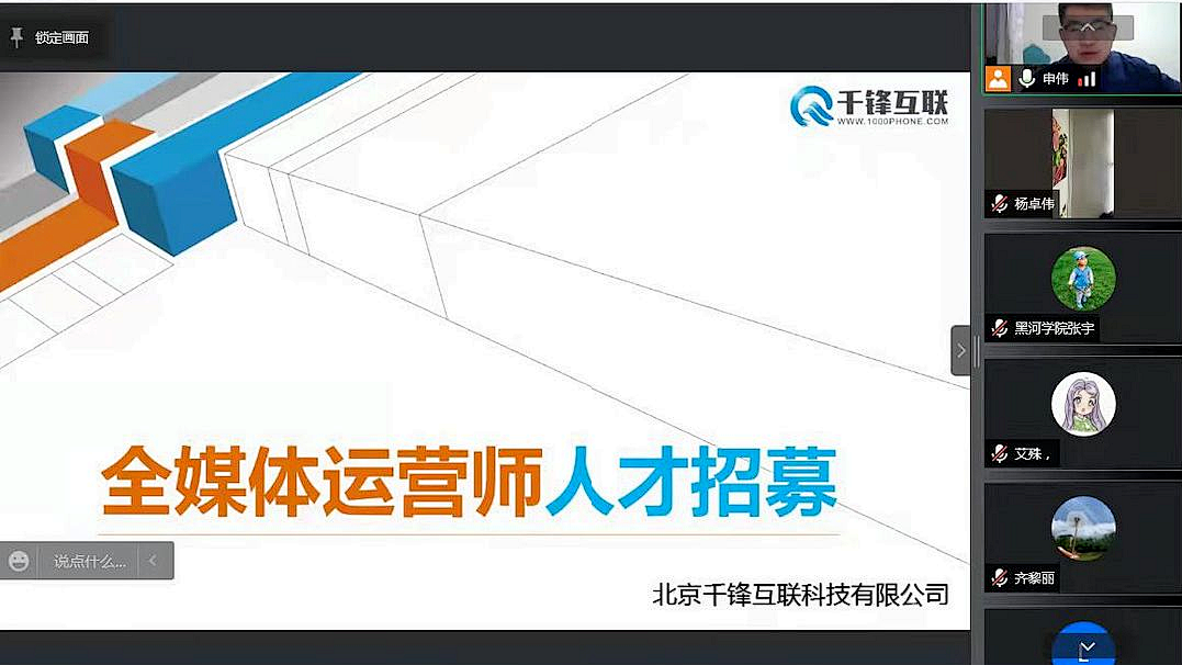 为进一步帮助毕业生了解当下企业招聘需求,早日找到高质量的心仪工作,11月21日晚18:30,我校经济管理学院、计算机与信息工程学院、文化旅游学院和人文传媒学院四个学院联合举办北京千峰互联科技有限公司专场招聘会,会议由北京千峰哈尔滨分公司总经理申伟宣讲,黑河学院经济管理学院齐黎丽主任主持。