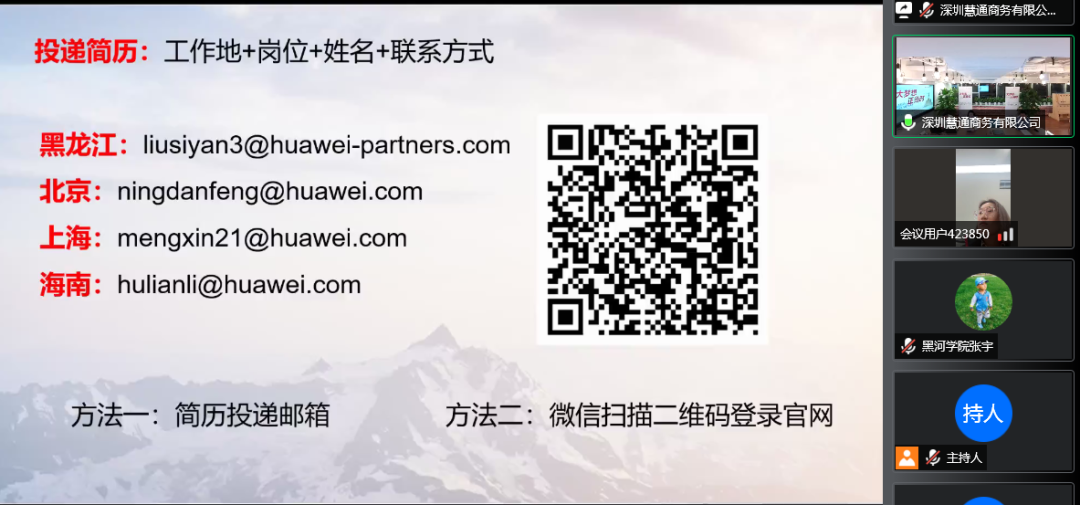 最后,华为慧通与参会同学进行了积极互动。希望同学们端正就业心态,明确就业目标,衷心祝愿同学们择业顺利,就业成功,愿同学们早日入职华为慧通,尽享精彩人生。
