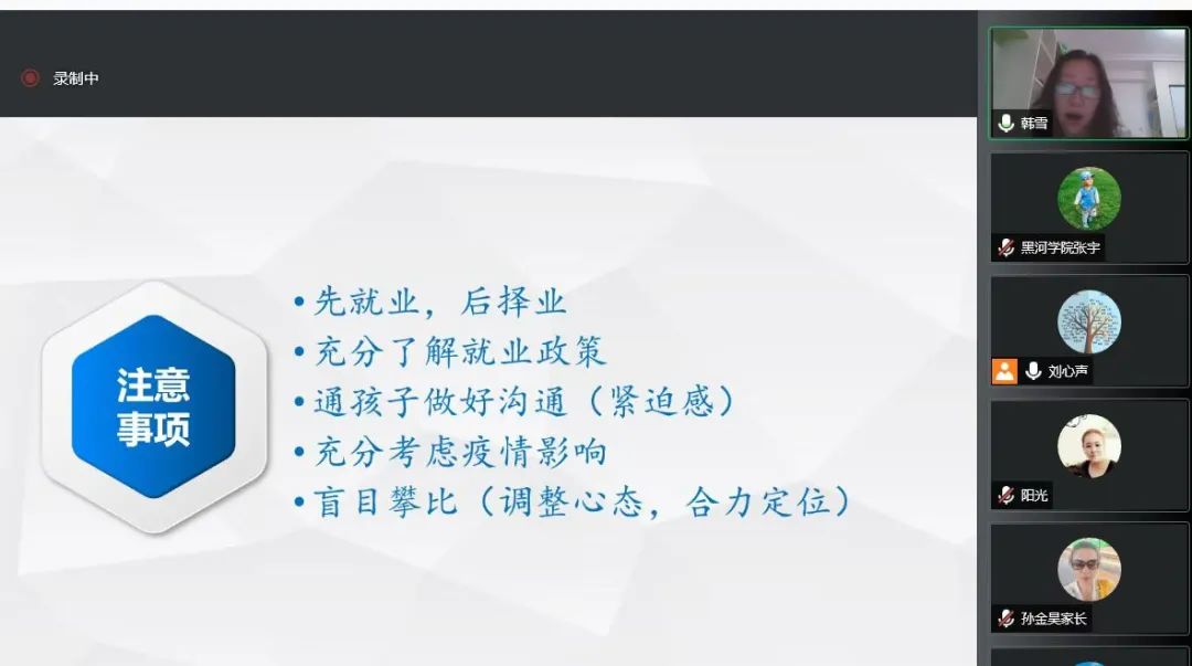 此次家校联动会搭建了家校沟通的桥梁,不仅帮助家长们认清了2022年就业形势,更促使家长们了解了大学生专项就业政策,一定程度上缓解了家长焦虑的就业心理,保证了2022届毕业生的就业去向落实情况,让家校联动机制为学生高质量就业保驾护航。