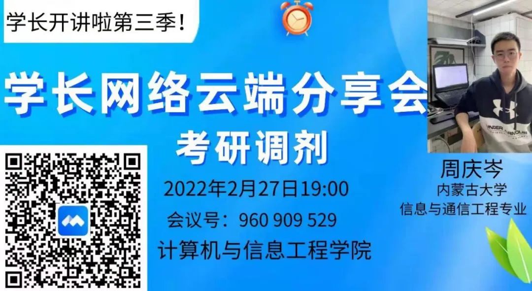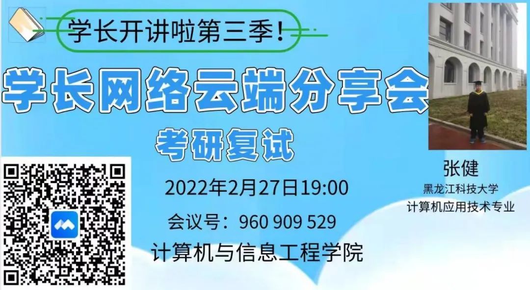 为进一步做好2022届毕业生考研指导服务工作,计算机与信息工程学院于2月27日晚19:00点,利用腾讯会议举行了学长开讲啦第三季之“研”途必胜考研面试分享会,为今年考研复试学生指导答疑。