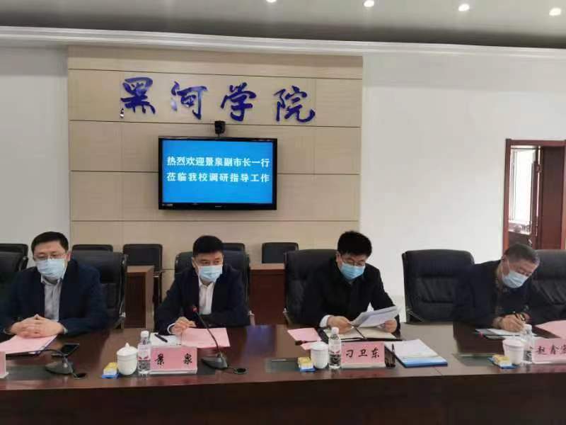4月11日,为深化产教融合、校企合作,推动人才培养与就业有机联动及人才供需的有效对接,黑河市景泉副市长、黑河市工业信息科技局局长刁卫东等一行7人莅临黑河学院,就黑河市寒地试车产业人才需求调研共商校企深度合作事宜。我校杨敬民校长、许海深副校长、教务处苏丹处长、计算机与信息工程学院院长刘心声、信息工程系主任刘平、经济管理学院孙磊书记等参加会议。
