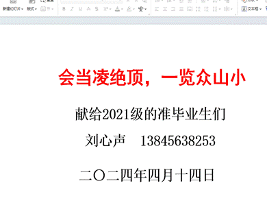 菁菁学子,行“职”有道。为了给2021级毕业生提供更精准的就业服务,打开机遇之门,推动2021级毕业生充分就业与高质量就业及就业分流,4月14日早8:30分我院于求知楼报告厅组织召开会当凌绝顶,一览众山小|2021级准毕业生宣讲会。会议由辅导员李长庚主持,刘心声院长主讲,2021级全体同学参加。