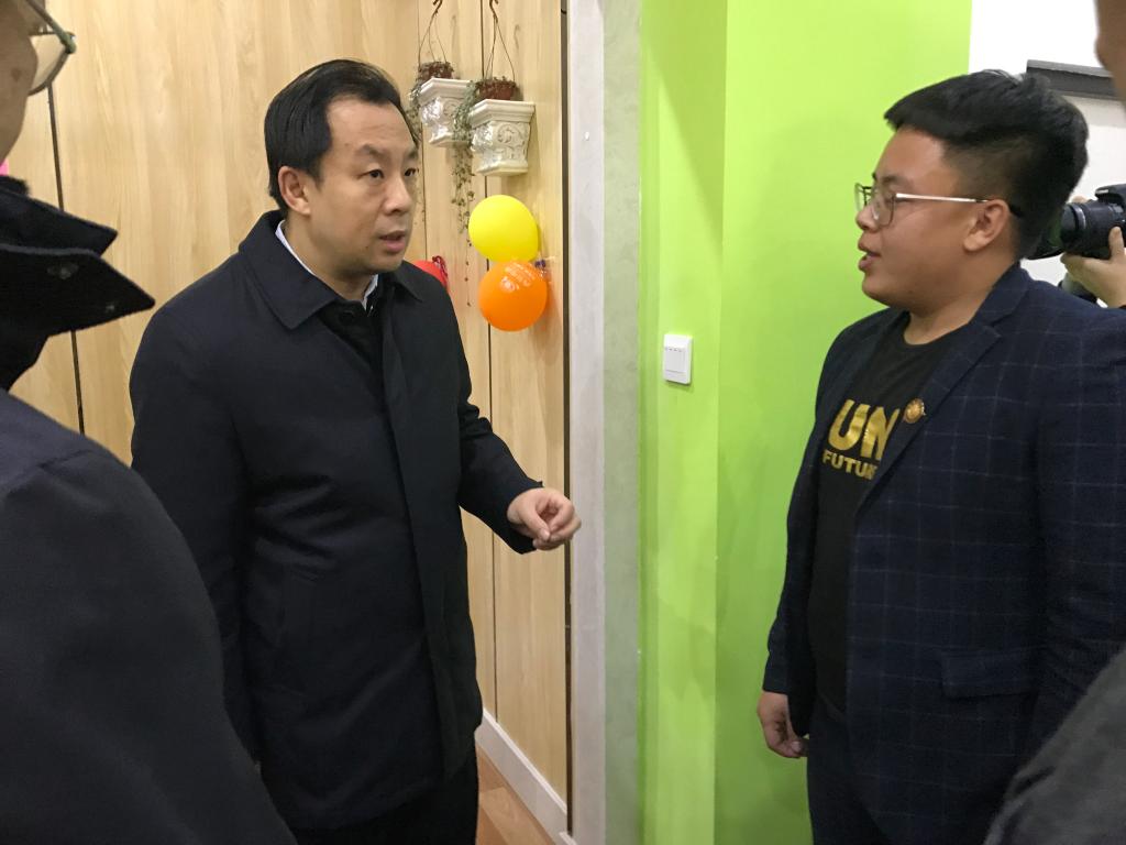 11月1日,黑龙江省省长陆昊亲临瑷珲“互联网+”推进办参观指导工作,在参观过程中,陆昊省长仔细听取了我校计算机与信息工程学院2014级计算机科学与技术3班学生张帆的个人创业经历、企业的发展现状和未来发展设想介绍,并详细询问了市场投放、企业运营、创业困难等情况。
