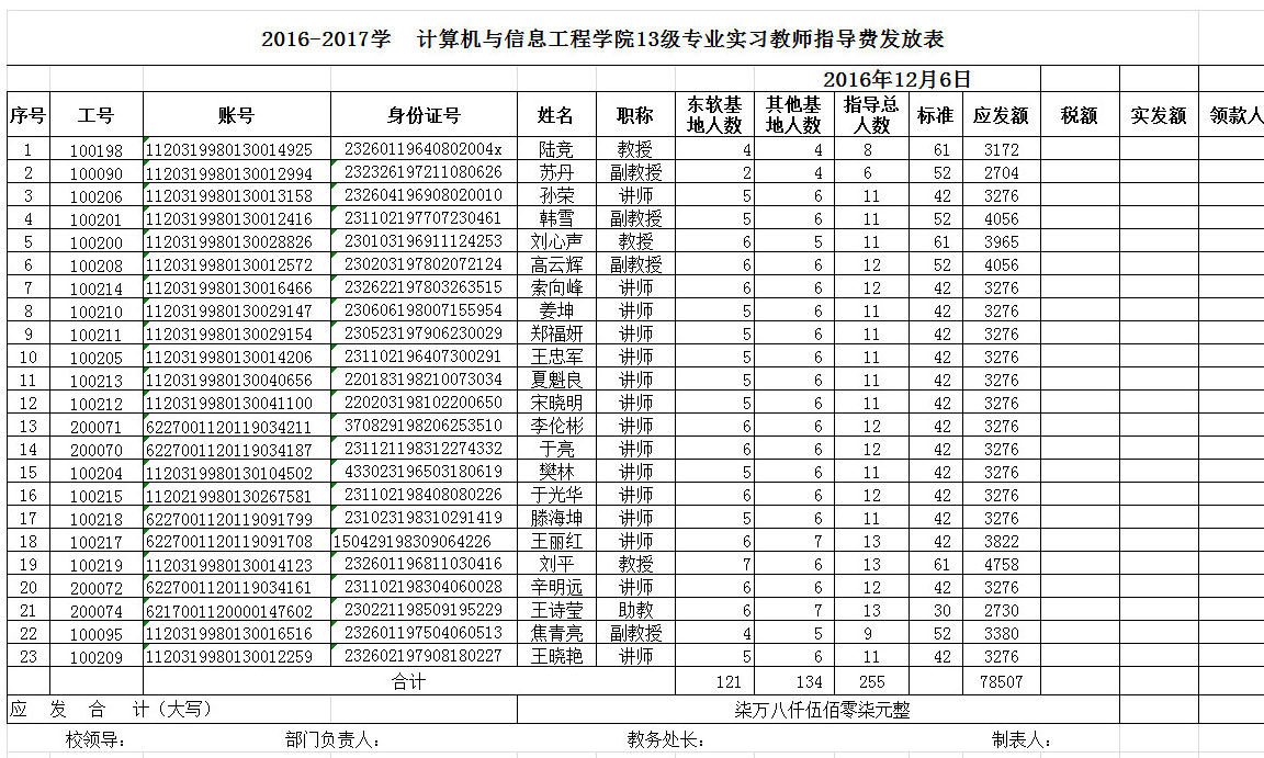 现将2013级专业实习教师指导费情况公示如下,公示期为2016年12月8日到2016年12月14日,有问题,请及时联系刘院长,电话:0456-6842183。
