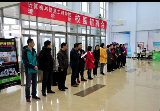 本网讯(通讯员 周星宇 刘帅)5月6日,计算机与信息工程学院与理学院2017年毕业生专场招聘会在探知楼隆重举行。校党委副书记杨宏,招生就业处处长杜英,副处长郑宝民,计算机信息与工程学院院长陆竞、党总支书记任波,理学院党总支书记刘立、副书记杨静及有求职意向学生参加此次招聘会。