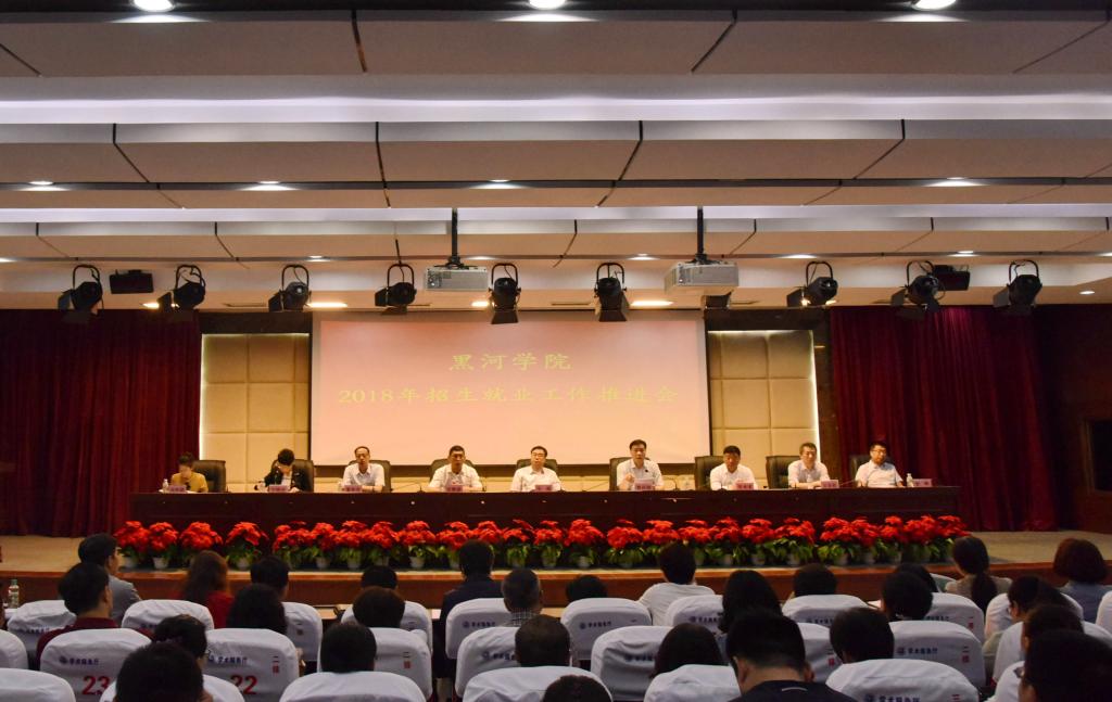 6月8日下午,学校在求知楼报告厅召开2018年招生就业工作推进会,校领导班子成员、副处级以上干部、各学院教师代表及招生就业处、教务处、学工部、团委全体工作人员参加会议。