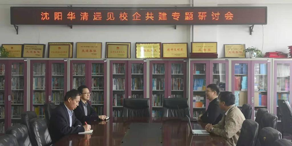 2021年5月14日上午,沈阳华清远见黑龙江区域赵海飞经理及专业工程师任程明工程师一行来我院进行校外实习实训基地事宜进行研讨!