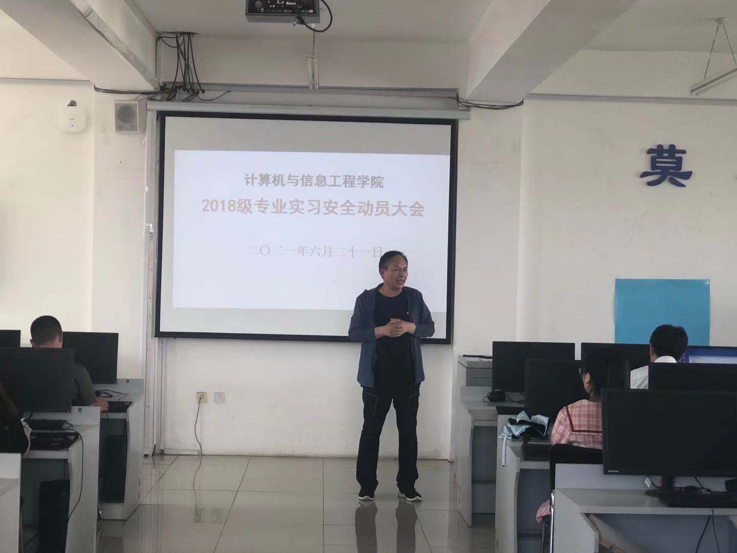 2021年6月21日14:00,计算机与信息工程学院在探知楼A309召开了2018级专升本学生的专业实习动员会,晚上18:00在求知楼报告厅组织召开了2018级统招学生的专业实习动员大会。