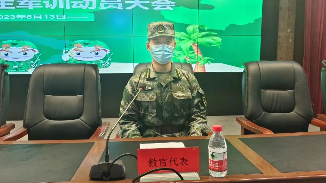 教官代表孙哲功鼓励同学们把自己当作一名真正的军人、勇敢的战士,去克服困难,拼搏奋斗,以崭新的精神面貌接受军训的淬炼。