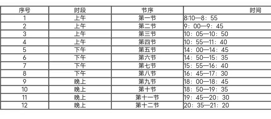 5.9月18日起开始上课(附作息时间表)