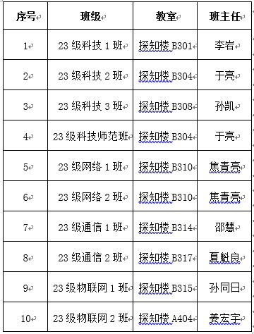 23级物联网1班班主任 孙同日:15383330139