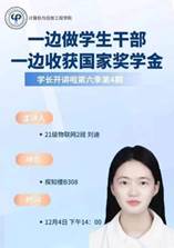 活动开始,刘迪学姐首先进行了自我介绍,然后分享了自己的学习经历,其中包括考前在图书馆学习、参加机器人大赛等经历,接下来刘迪学姐又分享了自己当学生干部的经历,表示正是这个契机使她开始敢于展示自我,实现了自我的提升。最后,刘迪学姐对全体同学表示了最大期盼,希望大家努力奋进!