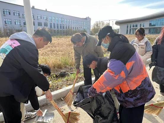 拔河后,团课学员们来到了我院分担区,共同参与“共建和谐美丽校园”清洁卫生活动。活动中,大家分工明确,互相配合,对分担区内的白色垃圾进行彻底清理,美化了环境、净化了心灵。
