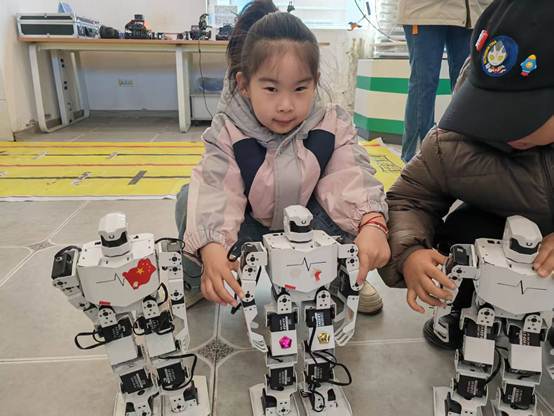 在最受期待的“动手实践环节”,计算机学院为孩子们分组准备了简易机器人拼装套件。在成员的一对一指导下,孩子们小心翼翼地拼接零件、连接线路,专注的眼神中满是对创造的渴望。当自己组装的小机器人成功启动并完成简单指令时,孩子们兴奋地举起作品向老师和同伴展示,成就感溢于言表。