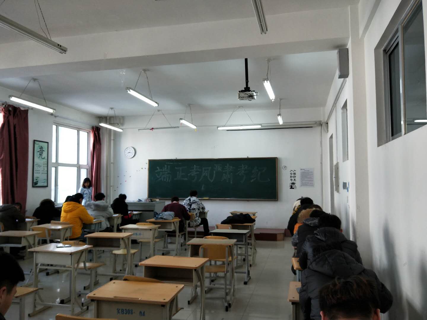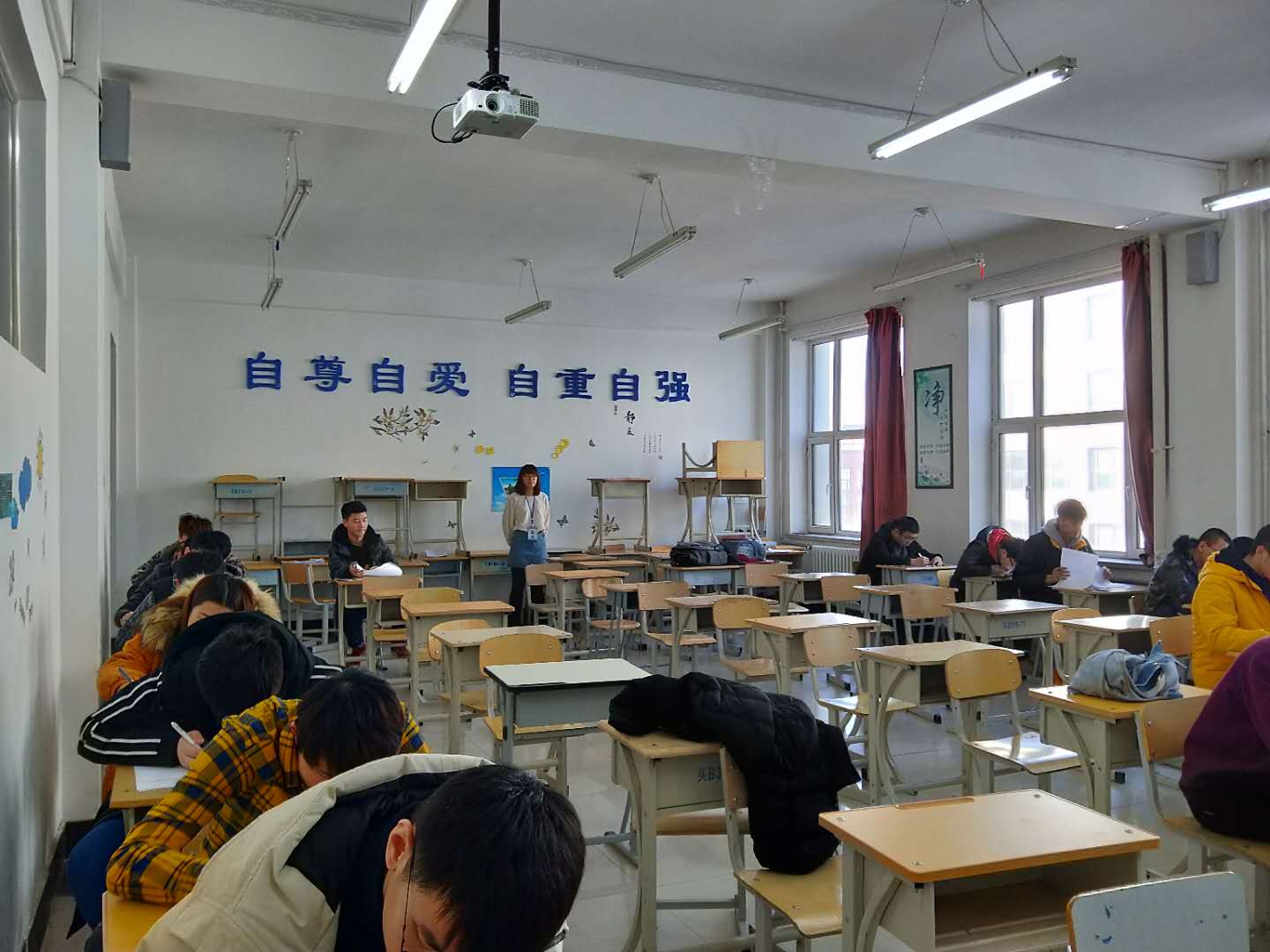 2018-2019学年第二学期专业课补考于 2019年 2月 22日 8:10分准时开考,所有考场秩序井然,考场环境良好,考生能主动将手机等通信设备及与考试相关的资料提前放到考场讲台或后面;监考教师站位准确,认真负责,逐一核对考生信息,认真监控考场秩序;院长陆竞同志、副院长刘心声同志不定时进行考场巡考工作,及时处理考场中出现的问题。