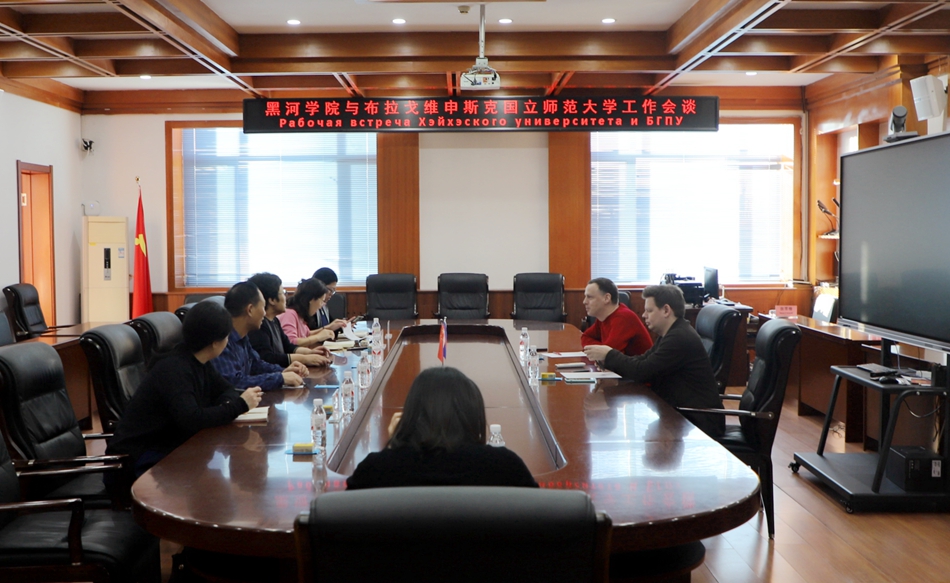 2024年1月2日,俄罗斯布拉戈维申斯克国立师范大学外事处处长库哈连科·尼古拉·弗拉基米罗维奇、科研创新处处长库哈连科·谢尔盖·弗拉基米罗维奇来访我校,同党委委员、副院长谢慧及相关部门、学院负责人举行工作会谈。