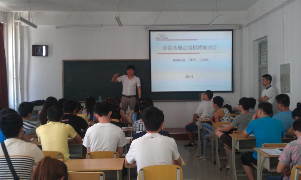 2014年6月22日上午8:30,在探知楼B308、B317两个多媒体教室分别进行了专业实习校外实训基地宣讲会,黑河天漠海、哈尔滨赛斯特、哈尔滨今日图灵、哈尔滨JAVA时代、哈尔滨诚德、哈尔滨深港、沈阳大连东软、上海微鼎等基地人力资源管理人员分别对本基地进行了较为详细的介绍,宣讲会一直持续到下午2点钟,2015届专业实习生热情极高,每位学生都十分关注自己的就业方向与发展定位。